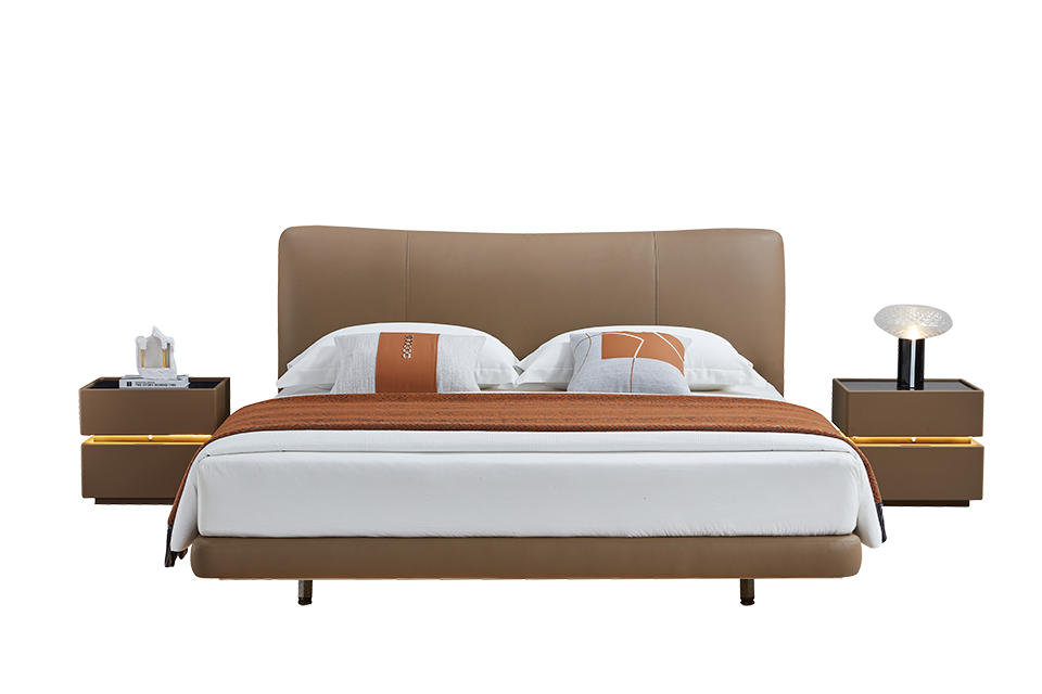 当前最热的高级浅咖色香奈儿床屏,环绕床底灯搭配悬浮床设计,紧追时尚潮流
