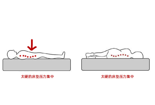 太坚硬的床垫不能均衡承托身体所有部位,承托点只会集中在身体较重的部位,如肩膀和臀部。同时由于青少年睡眠习惯是平躺的较多,平躺时孩子的腹部会对凹入的腰椎造成压力,腰椎向下受力,而木板床垫不能对凹入的腰部提供支撑力,长久下来,容易会造成孩子驼背。